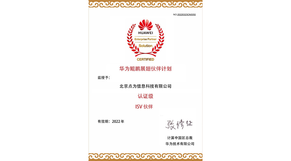 3月25日,點為正式加入華為鯤鵬展翅伙伴計劃,成為認證級 ISV 伙伴,雙方將致力于技術、產品、市場、渠道等多方面合作,建立并完善信創生態體系,共同推動數據決策在高職院校落地,助力職業教育數字化轉型和治理能力現代化。